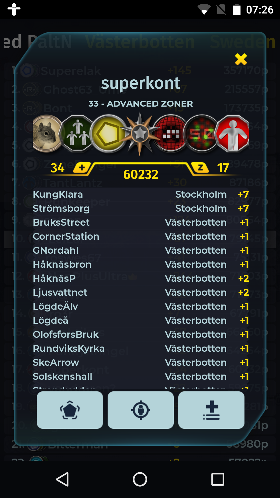Öppna resultatlistan. Klicka på ett nick. Klicka sedan på ett zonnamn.